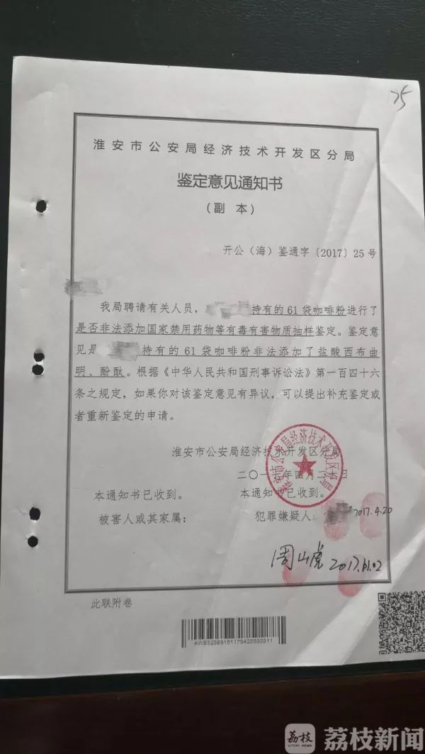2017年1月,淮安市民朱女士在服用網(wǎng)上購買的一款“左旋肉堿咖啡王”網(wǎng)紅減肥食品后,不但感覺頭暈,而且還出現(xiàn)嘔吐現(xiàn)象,懷疑自己吃了假減肥食品的朱女士將剩余食品送到食品藥品監(jiān)督管理局進行檢測?! ≈炫空f:“上面也介紹了沒有副作用,一個療程3盒吃下去的話減10斤到19斤。收到了之后拿過來沖了一包,第二天就不太想吃飯,頭也暈心里也發(fā)慌。我身邊朋友都建議把這個東西化驗一下,然后人家藥監(jiān)局就說里面有很多超標的?!薄 z測結(jié)果顯示,這款所謂的左旋肉堿咖啡里根本就沒有真正的左旋肉堿成分,而是用低價咖啡粉非法添加了大量的鹽酸西布曲明、酚酞等化學(xué)物質(zhì)。于是,淮安市食品藥品監(jiān)督管理局將該案線索移交給淮安經(jīng)濟技術(shù)開發(fā)區(qū)警方。接手案件后,辦案民警發(fā)現(xiàn)案情較為復(fù)雜,涉及到的利益方不止是網(wǎng)店銷售一個環(huán)節(jié),背后還涉及多方賣家。劣質(zhì)咖啡粉變身網(wǎng)紅“減肥藥” 淮安經(jīng)濟技術(shù)開發(fā)區(qū)公安分局??诼放沙鏊彼L袁學(xué)高說:“我們先是偵查了這個‘玫瑰花苑’淘寶網(wǎng)店,這個網(wǎng)店他的掌柜在江蘇沭陽,我們于2017年2月份的時候到江蘇沭陽將涉嫌生產(chǎn)銷售有毒有害食品的孫某、朱某夫妻二人抓獲歸案。經(jīng)過審查,夫妻二人如實交代了,其從上家‘菲兒窩窩’淘寶網(wǎng)店處購買左旋肉堿咖啡王的事實。”