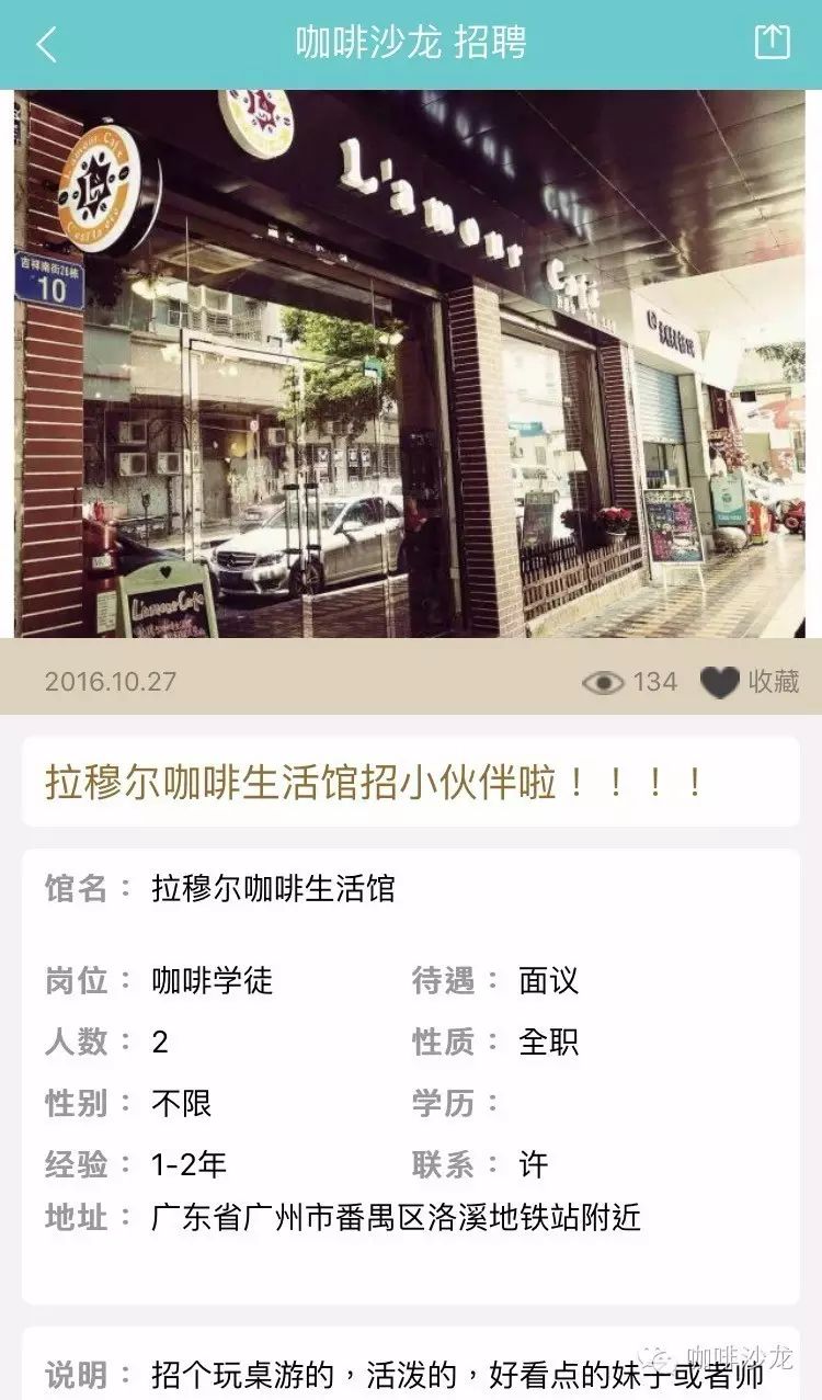 看完還不心動?!趕緊進(jìn)入咖啡沙龍招聘頻道發(fā)布&尋找你的咖啡館吧!I need you?。?!號外咖啡館主、咖啡師加群交流請點(diǎn)擊這里?。?!