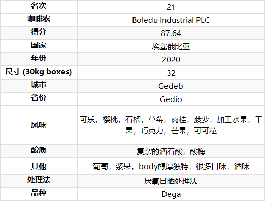 - 24、Gemeda Elias Dube前街咖啡在前文介紹的第19名獲獎?wù)咭搏@得了第24名,在這里就提供以下豆子信息。
