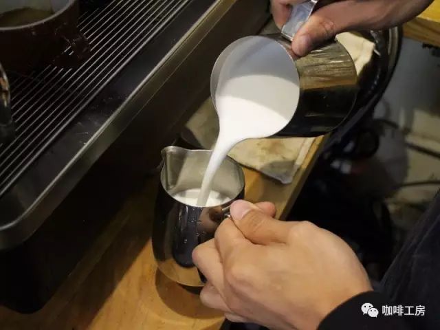 『奶泡控制力問題』打奶泡的幾個標(biāo)準(zhǔn),其中一個是想打多少奶泡就打多少奶泡;想打七分滿,決不打九分滿;做一杯出品,決不打兩杯的奶泡量出來;每次做出來的cappuccino在奶泡質(zhì)量方面一定是一致的。 『最后的關(guān)鍵:奶泡的處理 』 牛奶打發(fā)后,還不是我們理想中的奶泡,而是處于分層狀態(tài),下層是被加熱的牛奶,上層是打發(fā)后的“奶沫”,所以我們要對打發(fā)后的牛奶進(jìn)行處理。上下抖動,去掉表面的粗泡沫;搖晃,讓熱牛奶與上層奶沫充分混合,形成奶泡。也可以通過兩個拉花缸來回倒實現(xiàn)(這個動作一定要溫柔)。這一步很關(guān)鍵,一些朋友特別不重視這點,那就前功盡棄了。打出分層的奶泡要怎么解決: 1、將裝有奶泡的拉花缸放垂直與臺面進(jìn)行碰撞,這樣會使大的奶泡破滅成小的奶泡,大奶泡都破滅之后,水平搖晃拉花缸,讓奶泡旋轉(zhuǎn)碰撞,也會消除掉一些大奶泡,綿密的奶泡就像鏡面一樣很光滑,有光澤。 2、使用勺子將奶泡上面一層大奶泡刮掉,留下下面的綿密奶泡?! ?、將裝有奶泡的拉花缸倒入另外一個拉花缸。