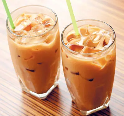 泰式奶茶最特別的地方是茶的顏色呈橘紅色,并且茶香勝過奶香。推薦喝法是在煮好的濃郁紅茶中,加入奶以及冰糖調(diào)和,飲用前,在杯中放入滿滿一杯冰塊后再?zèng)_入奶茶。煮泰式奶茶的比例可以按照1份茶葉、3.3份水。1/2份冰糖、1份奶。