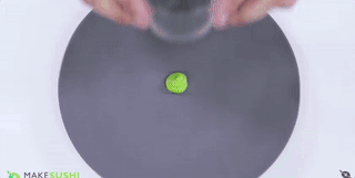 這個造型比較好猜,就是利用的是小圓形餐盤疊加在大圓形餐盤的邊沿之上,然后沿著盤子的邊緣撒上調(diào)味粉就可以啦!如果身邊沒有多余的盤子,也可以用紙張來做掩蓋。