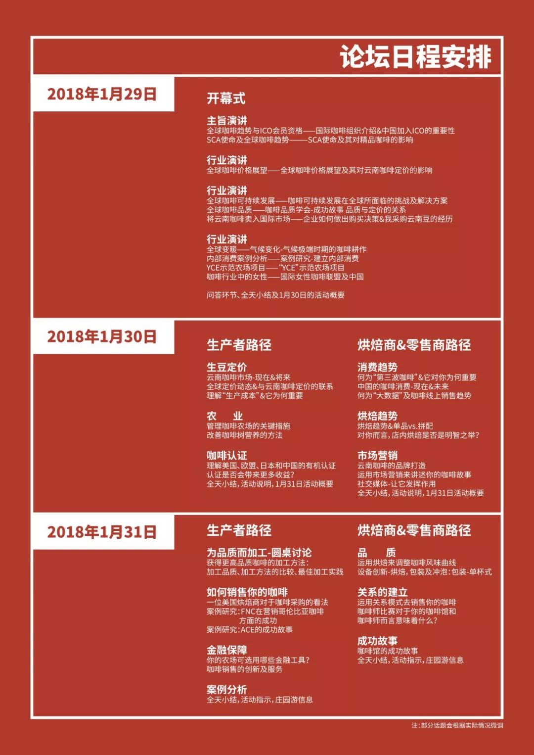 2018年全球咖啡頂級(jí)論壇將在中國(guó)最大的咖啡產(chǎn)區(qū)普洱舉行,作為咖啡人,居然有這么一個(gè)大好機(jī)會(huì)和國(guó)內(nèi)外30多位業(yè)界大咖面對(duì)面交流,上百家咖啡企業(yè)和上萬名業(yè)界精英也將匯集于此,這些咖啡界“武林高手”將為你指點(diǎn)迷津,打通你的任督二脈,在今后的“咖啡江湖”中,你的功力將層層疊加,說什么也不能錯(cuò)過哦。阿啡也將到普洱現(xiàn)場(chǎng)為大家?guī)砭手辈?,敬?qǐng)期待!