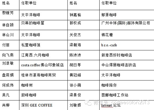 4月24日冠軍咖啡師分享會(huì)參與者名單公布