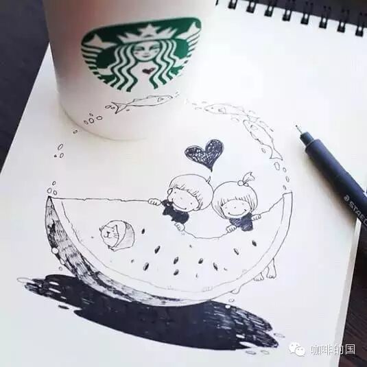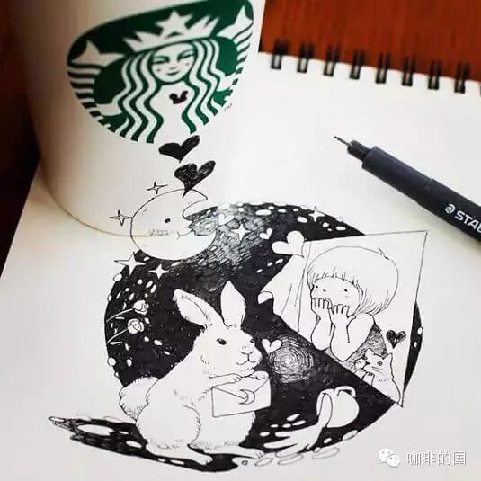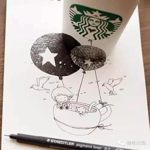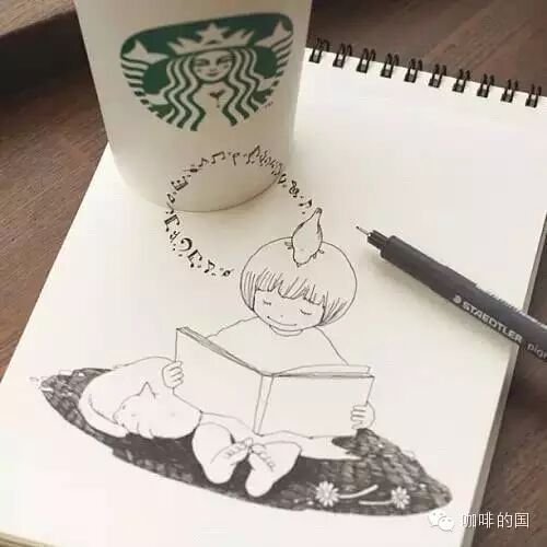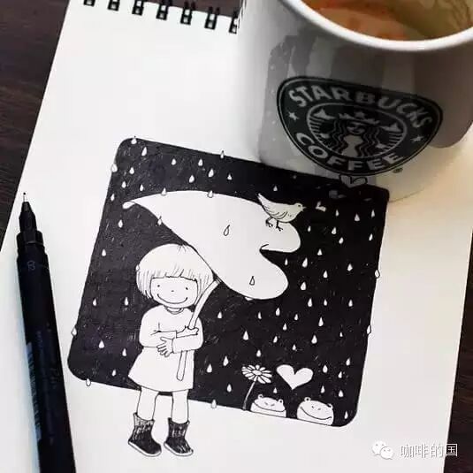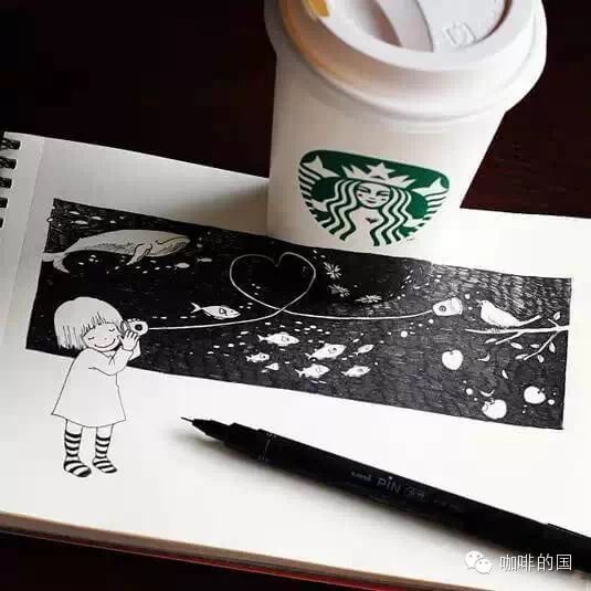 咖啡行業(yè)交流請(qǐng)加飲品界 精品咖啡香,微信號(hào):(長(zhǎng)按復(fù)制)thinkingcapacity分享交流咖啡館,咖啡豆的點(diǎn)點(diǎn)滴滴!!  一個(gè)人的咖啡時(shí)間,能做些什么呢?發(fā)呆,上網(wǎng),玩手機(jī)?似乎應(yīng)該更有創(chuàng)意些。Tomoko順手涂鴉了起來(lái),隨身攜帶的水性筆和畫本,畫上了極富創(chuàng)意又溫馨可愛(ài)的小插畫,更加特別的是,她將星巴克的杯子完美的融入了畫作里!