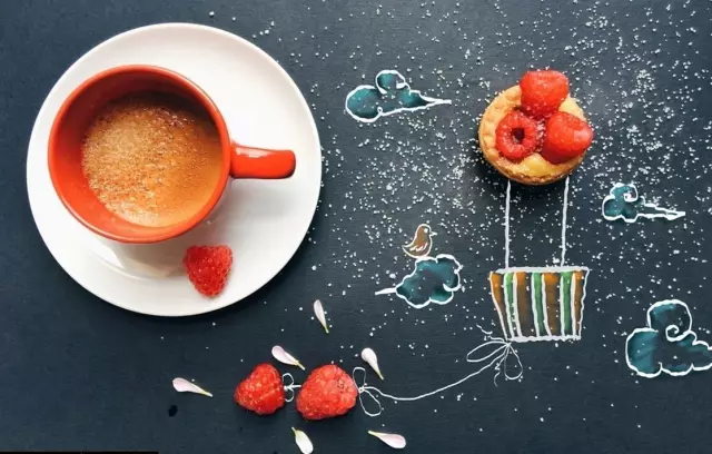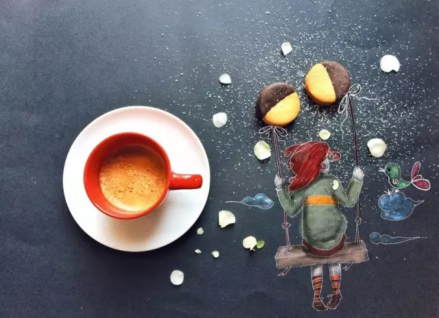 每人都有一個(gè)咖啡夢(mèng),有人為夢(mèng)想開(kāi)了家店,也有人把這夢(mèng)想變成一個(gè)個(gè)有趣的畫(huà)面。意大利博洛尼亞,藝術(shù)家Cinzia Bolognesi將每日早上的咖啡與小甜點(diǎn)融合藝術(shù)創(chuàng)作,打造出一幅幅充滿想象力的畫(huà)作。每天早上能喝上一杯這樣的咖啡,美味又養(yǎng)眼,還能為即將開(kāi)始的一天帶來(lái)美好心情。(圖片來(lái)源:Sipa Photo)