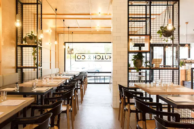 一間始于19世紀的鐵器店Hutchinson’s,如今被澳大利亞Biasol: Design Studio改造成一個現(xiàn)代化的餐廳和咖啡廳。大LOGO--Hutch & Co 醒目的印在餐廳挑檐的底部以及櫥窗、還有入口門上。設計師用淺色的美國橡木,啞光及高光瓷磚,混凝土飾面以及黑色鋼構件材料等材料之間的對比,再經(jīng)過獨特設計的暖色光源燈和灰色的軟質靠墊為空間營造出親密感。空間上為了對現(xiàn)有建筑的延伸擴建,所以分為兩個用餐區(qū),入口附近的室內(nèi)用餐區(qū)域和餐廳深處的室外用餐區(qū)域。(以上圖文源自:余論設計 感謝分享)【延伸閱讀】回復“管理”,看“咖啡館管理之道”回復“澳洲”,看“澳大利亞咖啡行業(yè)深度剖析”回復“包裝”,看“國外咖啡包裝創(chuàng)意設計”回復“促銷”,看“咖啡館的另類促銷”回復“LOGO”,看“國外咖啡館LOGO設計欣賞”回復“菜單”,看“令人流口水的咖啡館菜單設計”回復“咖啡杯”,看“外帶咖啡杯設計創(chuàng)意欣賞”回復“算賬”,看“幫你算筆帳:開家咖啡館要花多少錢?!”回復“最美”,看“我見過的最美咖啡館”回復“趨勢”,看“咖啡行業(yè)未來設計趨勢解讀”回復“本質”,看“看透咖啡館的本質再開店”回復“夢想”,看“就想在街角開家暖暖的咖啡館”回復“開店”,看“這樣開家成功咖啡館”回復“擺盤”,看“擺盤的藝術”回復“空間”,看“超棒的咖啡館空間設計案例”回復“VI”,看“九套咖啡館VI設計超棒案例”回復“門面”,看“最吸引人的小店門面”回復“環(huán)境”,看“格調(diào)很高的咖啡館環(huán)境欣賞”回復“設計”,看“咖啡館周邊絕妙設計,咖啡館經(jīng)營者必看!”回復“裝修”,看“咖啡館裝修設計案例,分享給有咖啡館夢想的你”回復“吧臺”,看“有一種霸氣叫咖啡吧臺!國外最新吧臺實例欣賞”